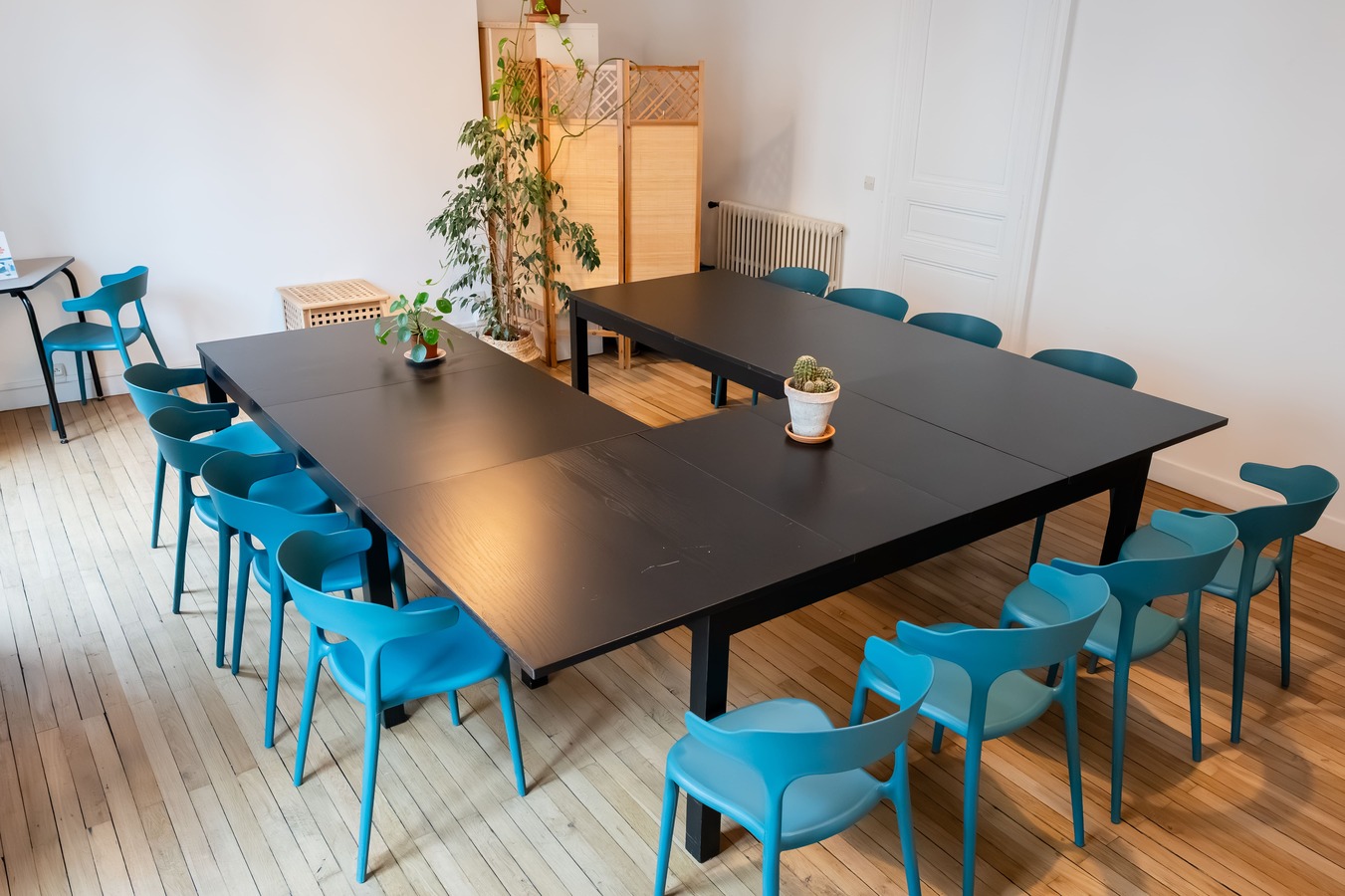 Située au cœur de Nantes, au 33 Rue de Strasbourg, cette salle de réunion se distingue par sa capacité à accueillir jusqu’à 12 personnes dans un environnement adapté aux besoins professionnels. Polyvalente et fonctionnelle, elle offre des conditions idéales pour collaborer efficacement.