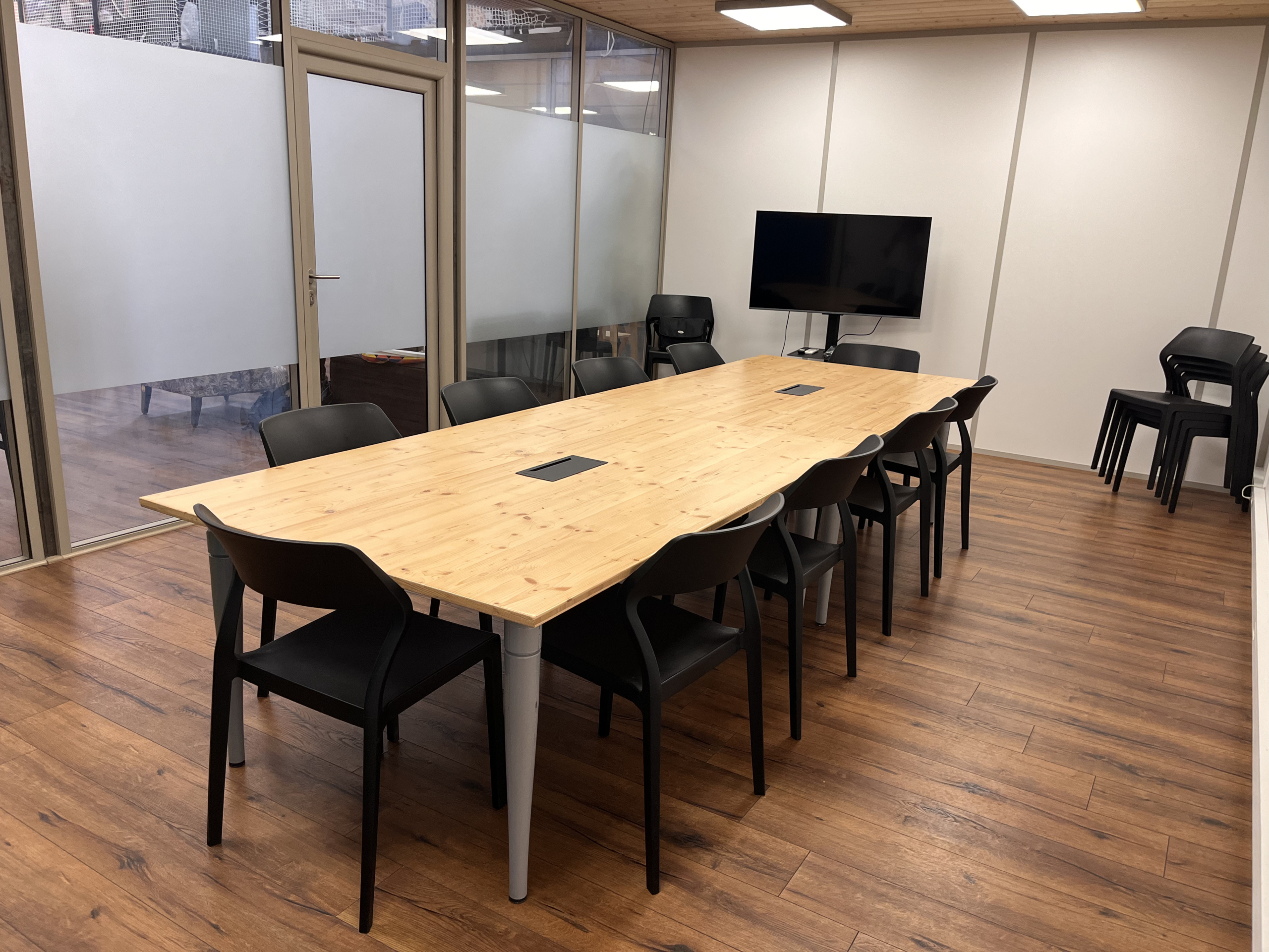 Cette grande salle vitrée saura motiver vos participant·e·s pour une formation, ou une réunion d’équipe inspirante. Elle peut accueillir jusqu’à 12 personnes.
